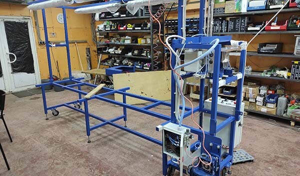 Универсальный станок для сборки трех типов держателей молниезащиты.