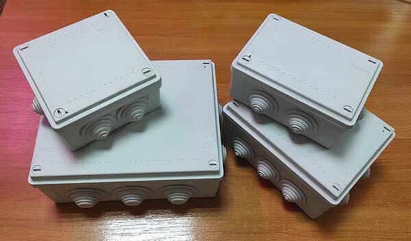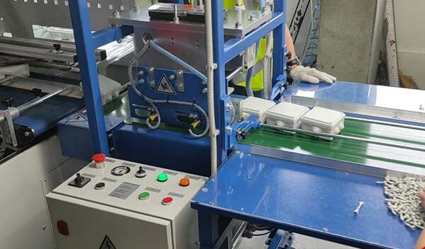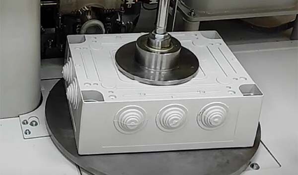 Полуавтомат с автоматической запрессовкой 10-ти вводов на одной базе монтажной коробки.