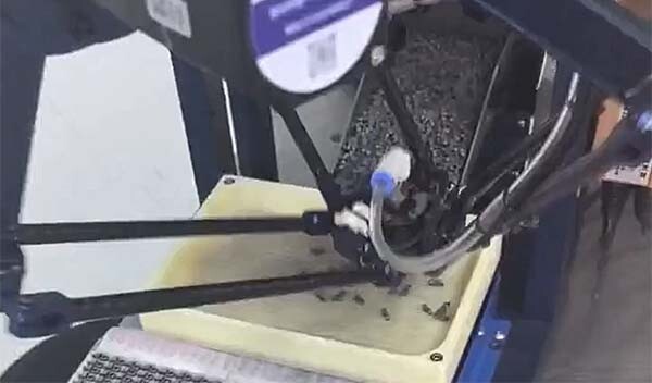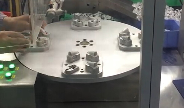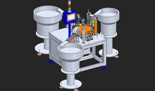 Подача деталей из вибробункеров, одновременно собираются два изделия.