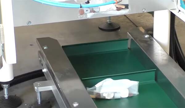 Загрузка изделий из интегрированного сортировочного конвейера.