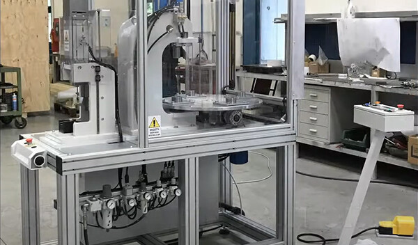 Автоматический станок для установки резиновых уплотнений на заглушки трех типов.